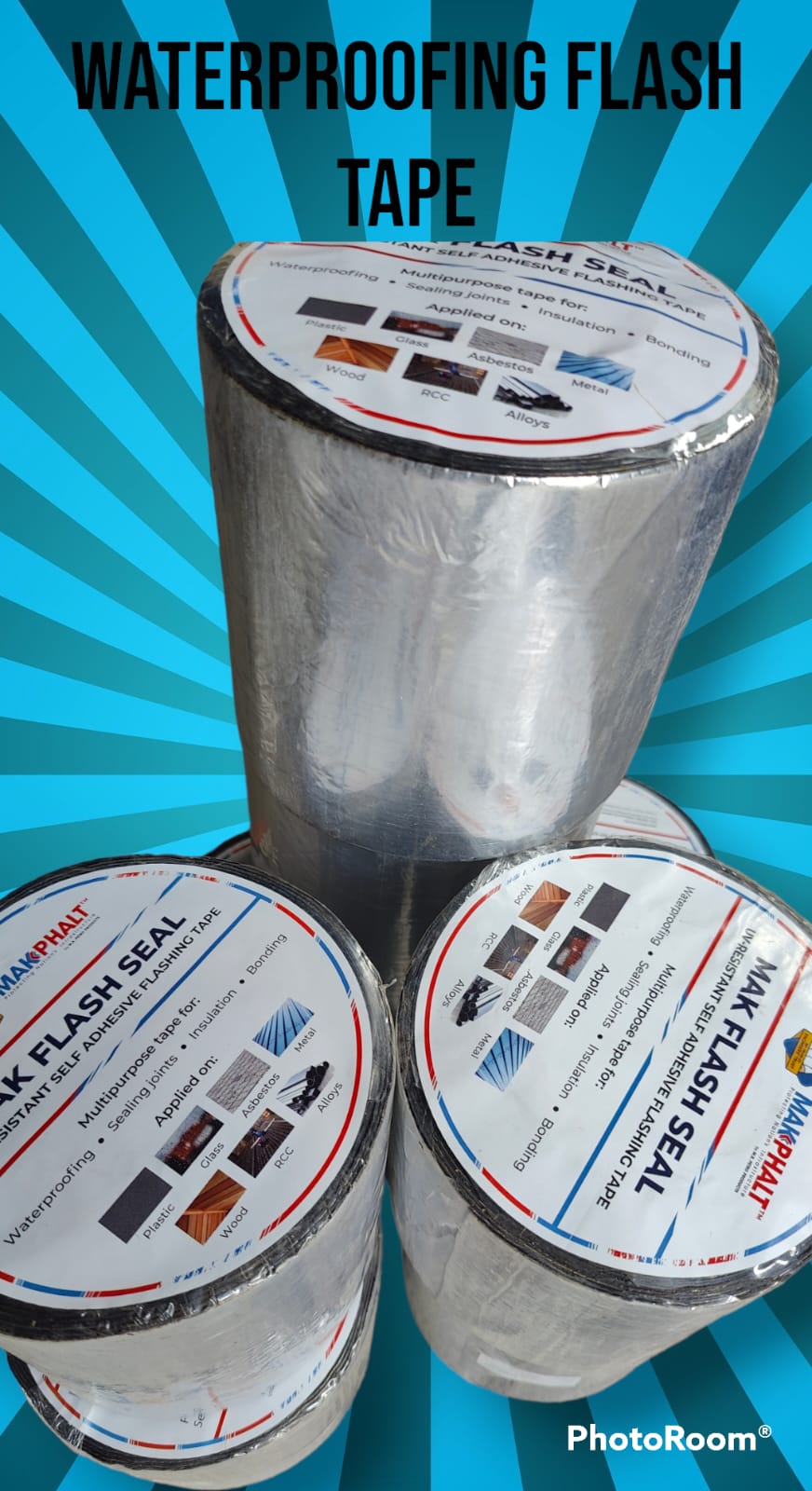 MAK FLASH SEAL is a self adhesive sealing bitumen modified aluminium finish strip, which bonds instantly to provide permanent watertight seal. It is easily applicable on roofs using hand pressure.